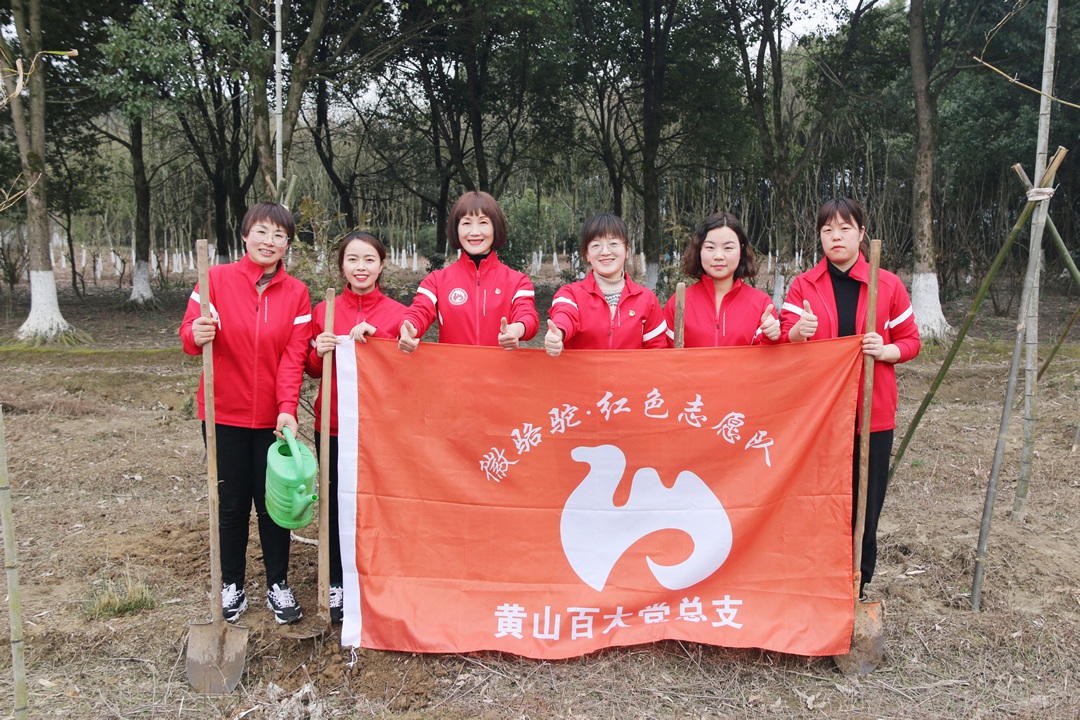 春和景明,万物萌动。每逢此时,手植新绿,是不变的约定。3月10日下午,植树节前夕,黄山百大“徽骆驼·红色志愿队”部分党员同志,前往市郊的“雾云间”生态庄园开展义务植树活动。