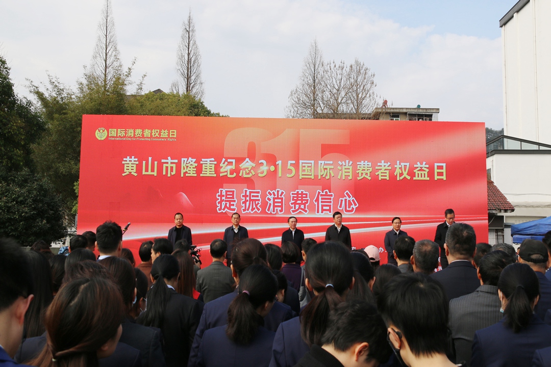3月15日上午,黄山市2023年“3·15”国际消费者权益日纪念活动在徽州大剧院广场举办。黄山百大作为放心消费示范单位代表参加纪念活动启动仪式。