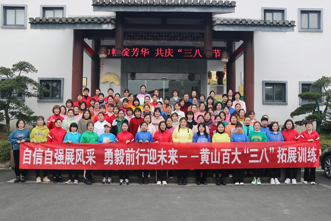 三月女人天,美丽女人节。为深入学习贯彻党的二十大精神,丰富女职工的业余文化生活,减轻压力,放松心情,进一步增强团队的沟通交流和团队协作意识,提升凝聚力向心力,在“三八”妇女节来临之际,黄山百大工会组织开展了一场大型女职工户外拓展训练活动。