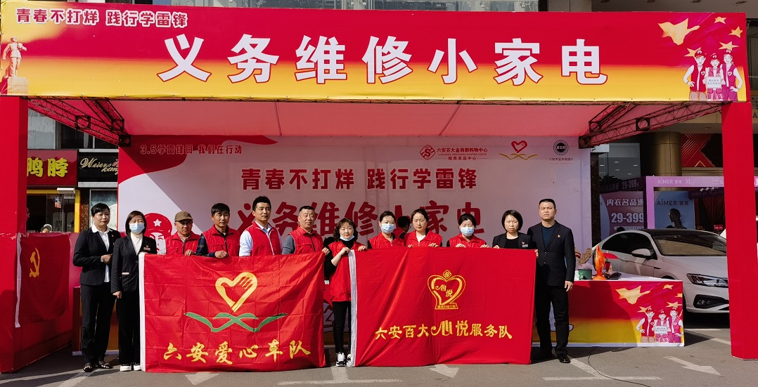 今年的3月5日是我国第60个学雷锋日,今天也是青年志愿者服务日,为弘扬雷锋精神,共建文明家园,六安百大党支部携手六安爱心车队共同积极响应号召,利用专业技术优势,在热闹的百大前门广场开展为市民义务维修电饭煲,电风扇,电吹风,电热水壶等小家电服务。