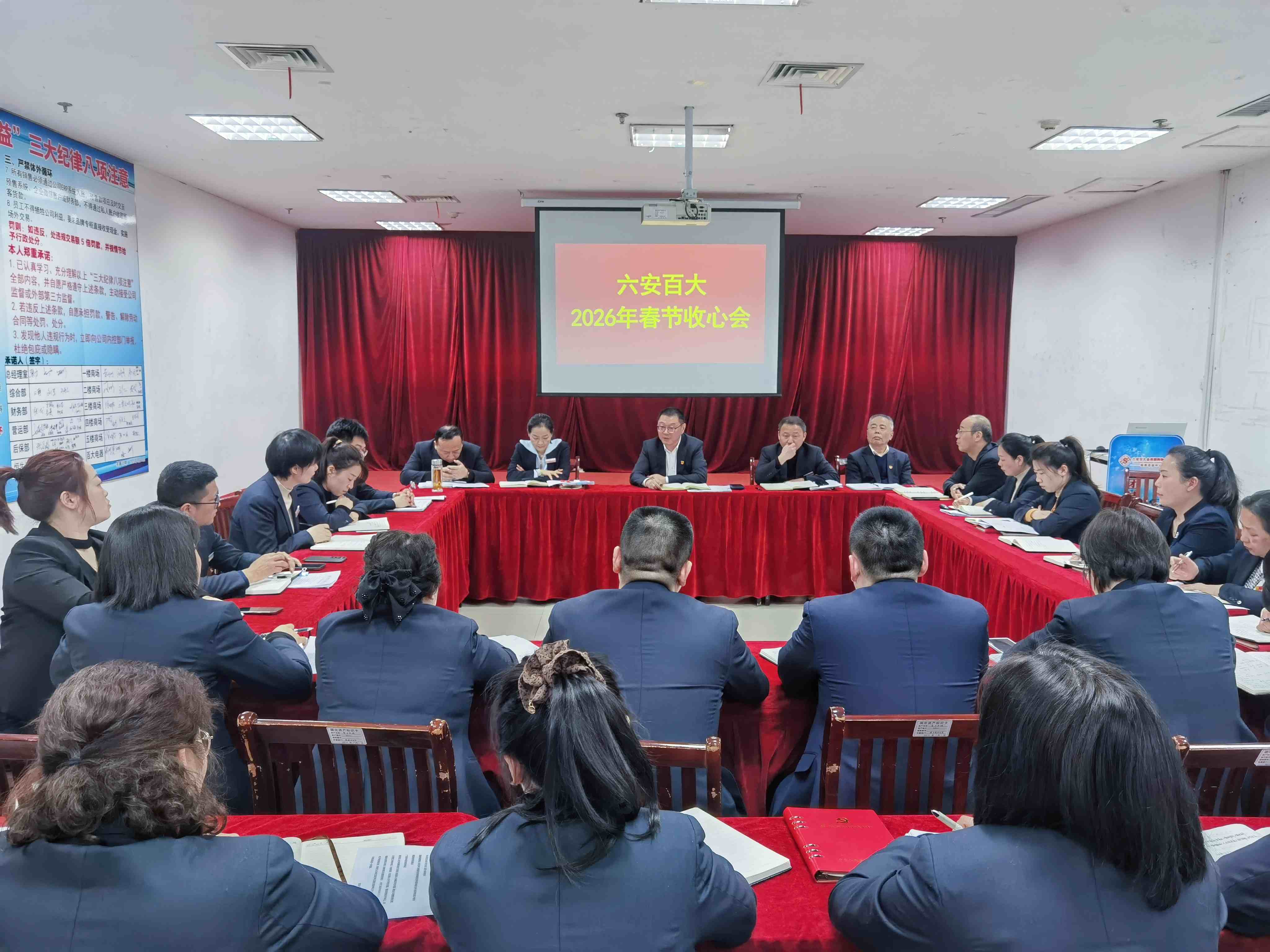 春启新程,奋进正当时。为迅速收拢全员工作状态,明确新一年工作方向,确保各项工作平稳有序推进,2月24日下午,公司节后收心会如期召开。各商场品类经理及以上人员、各部室助理及以上人员、公司领导班子全员参会,以饱满姿态开启新年工作新征程。