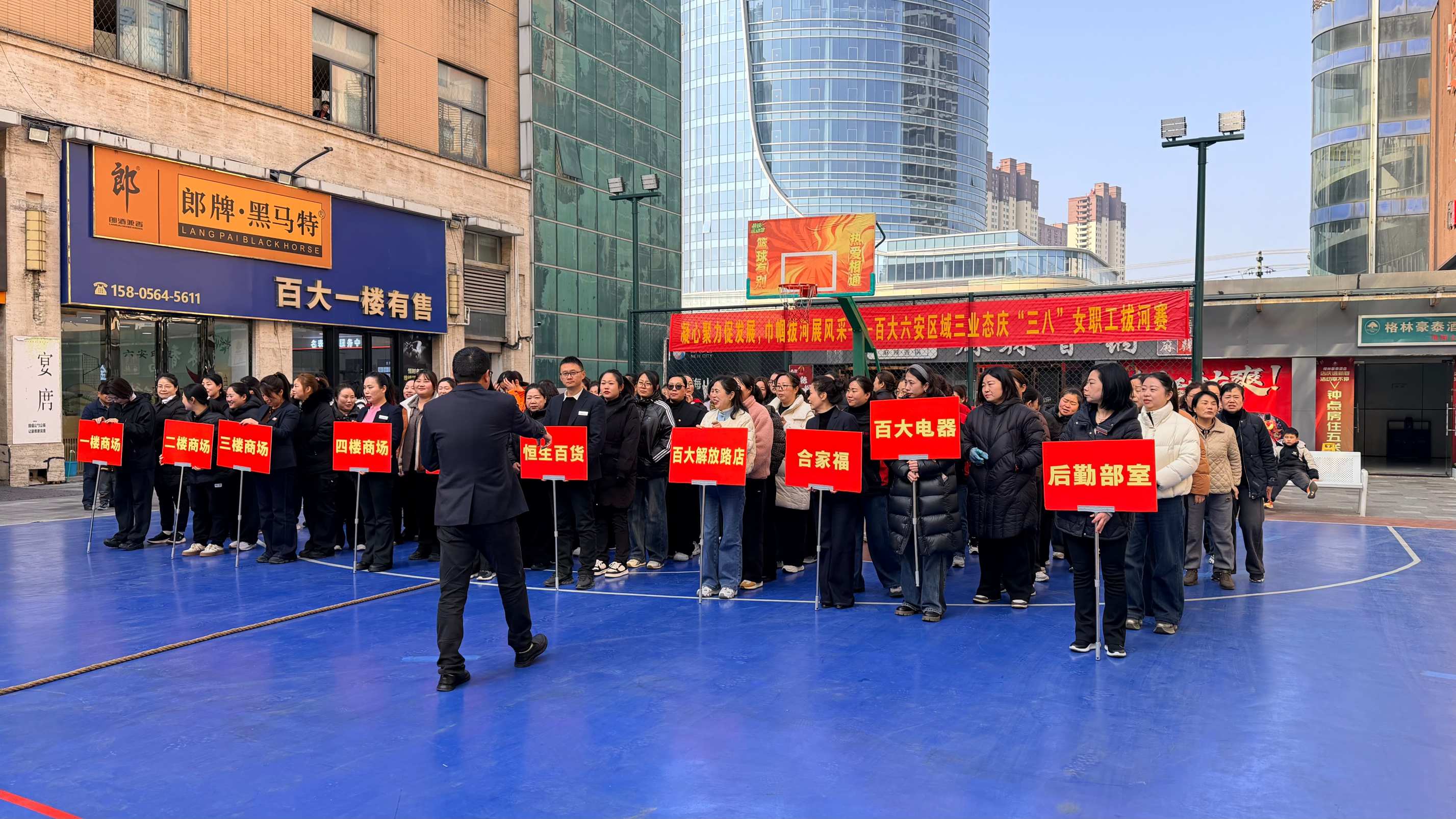 为庆祝“三八”国际妇女节,丰富女职工文娱生活,增强团队凝聚力与向心力,3月7日上午,六安百大在新都会天街篮球公园隆重举办“三八”节女职工拔河比赛,来自百大金商都店、百大恒生店、百大解放路店、百大电器、合家福的10支代表队、80名女职工齐聚赛场,以力量致敬巾帼,以协作书写芳华。