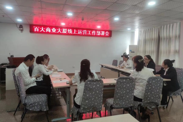 为贯彻落实集团线上运营工作推进部署会要求,2023年5月12日下午,公司召开了“百大商业大厦线上运营工作部署会”,会议由公司总经理助理王雯茹主持,营运部、各商场负责人及线上专员参加了本次会议。