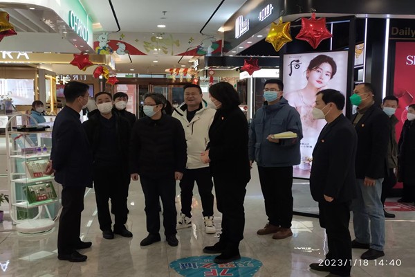 2023年1月18日下午,合肥市商务局副局长杨晓权一行莅临百大商业大厦督查安全生产工作。百大集团党委委员、副总经理张同祥,百大商业大厦党总支书记、董事长、总经理杨颖陪同检查。