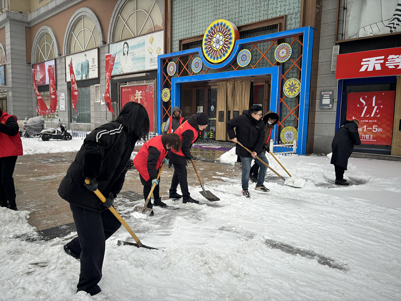 迎战风雪 党员先行——蚌百宝龙店党支部开展清雪除冰行动