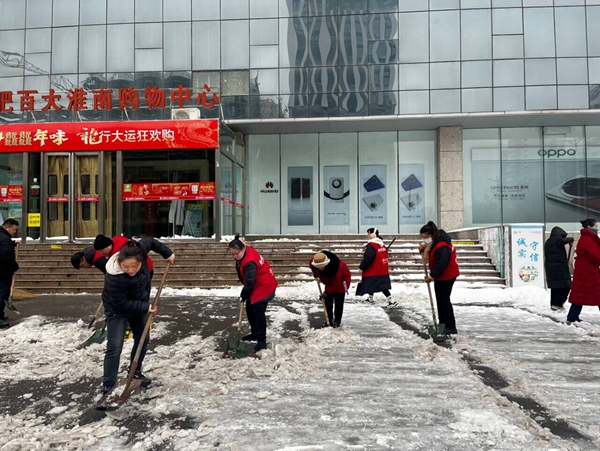 【党员齐上阵 铲雪暖人心】淮南百大党支部 开展集中清扫除冰活动