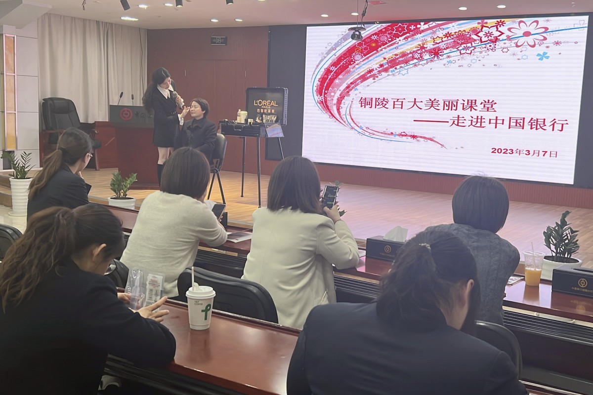 妆点美丽 扮靓自我 —— 铜百商场党支部 “美丽红先锋”小分队走进铜陵中国银行