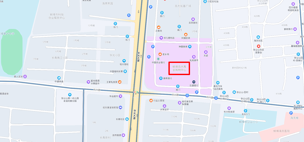 合肥百货大楼集团蚌埠百货大楼有限责任公司百大禹会购物中心坐落于蚌埠市禹会区华光大道与长乐路交叉口东南角,占据禹会区黄金商业位置,交通便利,是禹会区规划的唯一商业中心。于2013年9月30日盛大开业。